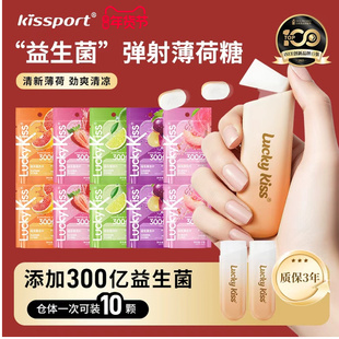 luckykiss弹射口香糖持久留香无糖薄荷糖清新口气网红益生菌含片 美食