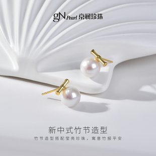 京润竹安925银淡水珍珠套装9-10白色圆形耳钉新中式竹节设计礼物D 美妆
