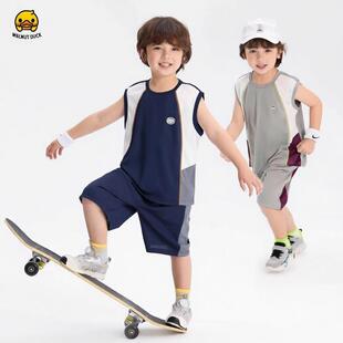 小黄鸭联名男女儿童夏季运动套装速干透气无袖背心短裤运动两件套 母婴