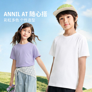 安奈儿童装男女童圆领短袖T恤针织衫2026夏多巴胺简约宽松亲肤 母婴