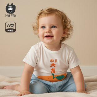 小猪大卫夏短袖t恤纯棉可爱男女宝透气吸汗圆领宽松上衣轻薄长裤 母婴
