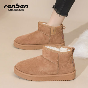 人本清仓棉鞋女2025冬季加绒加厚东北户外防寒保暖微瑕运动雪地靴 鞋包