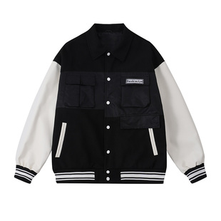 B.VEERA倍福来美式复古风拼接棒球服男女宽松翻领多口袋夹克外套 服饰
