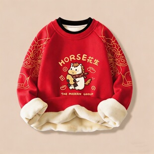 儿童2026新年红色卫衣裤子男女童加绒加厚保暖运动裤毛衣外套多选 母婴