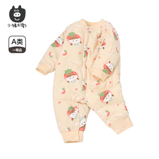 小猪大卫新生儿秋季保暖连体衣男女宝宝卡通印花中开夹棉爬服 母婴