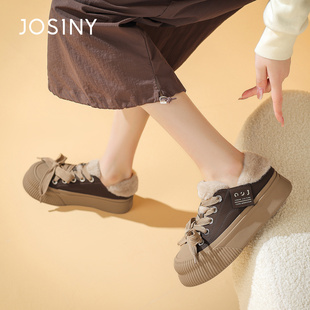 雪地靴秋冬加绒新款百搭中老年妈妈鞋时尚韩版一脚蹬懒人情侣棉靴 鞋包