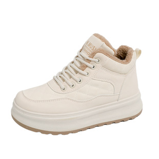 冬季加绒女鞋百搭厚底高帮保暖加厚软底棉鞋女外穿超软运动板鞋女 鞋包