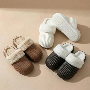 居家棉拖鞋女冬季防水棉拖鞋男防滑加绒加厚可拆洗内胆毛绒棉鞋 居家