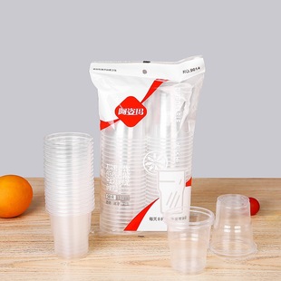 一次性杯子塑料杯家用加厚航空杯耐高温pp透明水杯茶杯饮品杯50只 居家