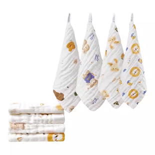 婴儿口水巾新生儿纯棉小方巾宝宝专用洗脸巾纱布儿童毛巾5条装 母婴