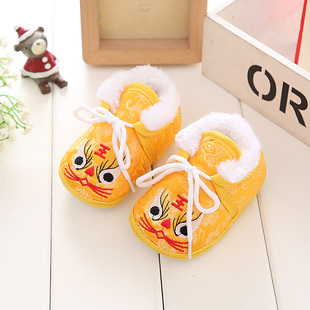 新生儿虎头鞋套脚加绒婴儿袜鞋0-1岁保暖防滑新年袜冬季 母婴