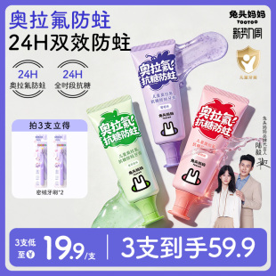 兔头妈妈儿童牙膏高纯奥拉氟牙膏抗糖防蛀牙龋齿含氟牙膏换牙期 母婴