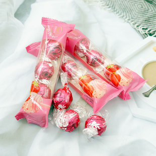 Lindt瑞士莲软心草莓奶油白巧克力3粒装休闲零食草莓牛奶黑巧克力 美食