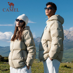 骆驼女装短款羽绒服冬季男女同款保暖加厚防风连帽面包服羽绒外套 服饰