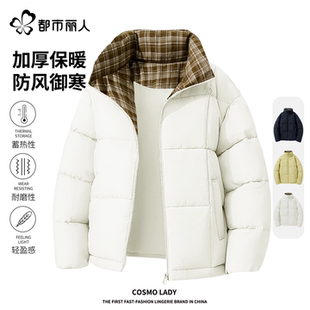 鸭鸭小香风羽绒服女士2025冬季新品短款立领加厚保暖撞色鸭绒外套 服饰