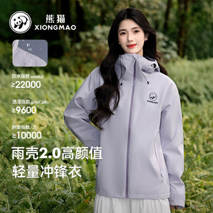 [雨壳]熊猫骆驼冲锋衣女2026春夏休闲夹克防风防雨登山服连帽外套 服饰