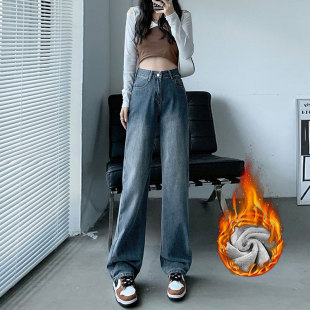 保暖加绒裤子女冬直筒裤休闲加厚外穿高腰百搭质感遮肉显腿阔腿L 服饰