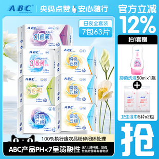 ABC卫生巾日夜组合瞬吸云棉整箱棉柔经期官方旗舰店正品姨妈巾 居家