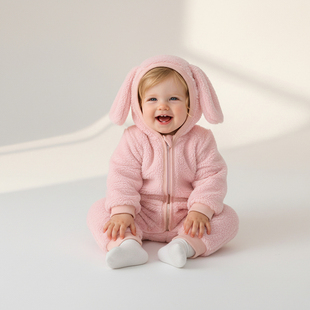 小猪大卫ins风可爱耳朵连体衣秋冬毛绒婴幼儿爬服保暖居家外出服 母婴