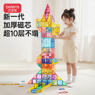 贝恩施儿童磁力片男孩女孩吸磁铁拼装积木宝宝磁力贴益智玩具 母婴