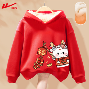 回力儿童卫衣加绒2025新款加绒上衣保暖衣女童男童连帽一体绒冬装 母婴