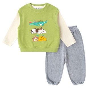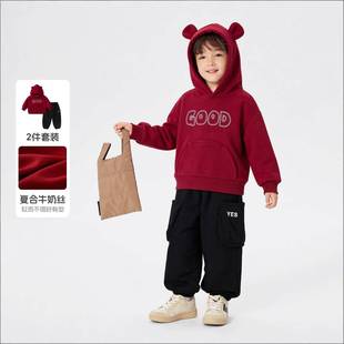 洛米兔2026新款连帽卫衣卫裤套装儿童秋冬两件套字母印花长袖套装 母婴