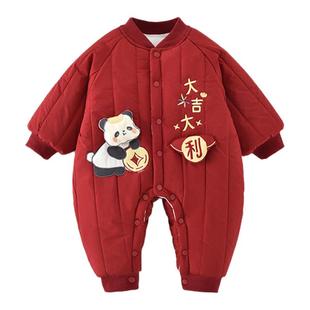 婧麒新生婴儿衣服连体衣保暖夹棉冬季过年喜庆满月宝宝外出拜年服 母婴