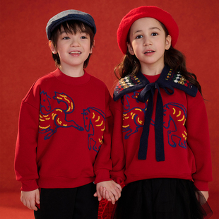 【新年】棉花堂儿童红色加绒卫衣秋冬2026新款男童上衣女童拜年服 母婴