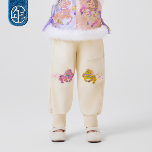 年衣儿童裤子男女童秋冬新款国风卫裤休闲裤宝宝运动裤灯笼裤加绒 母婴