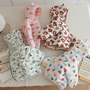 木木屋可爱花布小熊耳朵款棉服轻薄款春秋冬三季可穿男女童秋冬装 母婴