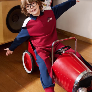 【新年马年】李维斯男童套装儿童运动红色2026春季拜年服过年衣服 母婴