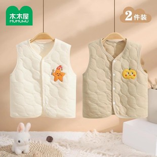 木木屋婴儿马甲春秋冬纯棉保暖上衣男女宝宝外穿无袖坎肩儿童衣服 母婴