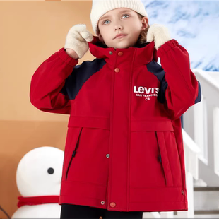 【新年马年】李维斯儿童外套男童风衣红色春季新款保暖加厚拜年服 母婴