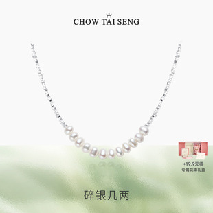 周大生碎银子珍珠项链轻奢小众高级感纯银锁骨链生日礼物送女友 配饰