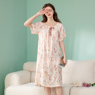 芬腾七夕礼物新睡裙薄款弹性娃娃领短袖蝴蝶结家居田园风睡裙花女 其他