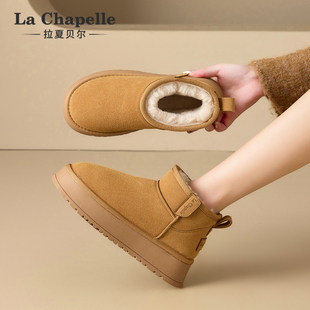 拉夏贝尔厚底雪地靴女2025冬季新款加绒加厚保暖外穿东北大棉鞋子 鞋包