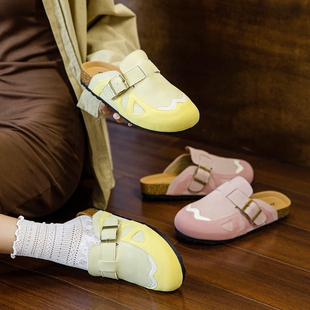 2025春秋女外穿时尚韩版百搭少女心单鞋防滑软底塑料扣乐福鞋厚底 鞋包