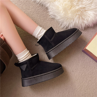 人本厚底雪地靴女2025冬季新款爆款加绒加厚皮毛一体保暖棉鞋短靴 鞋包